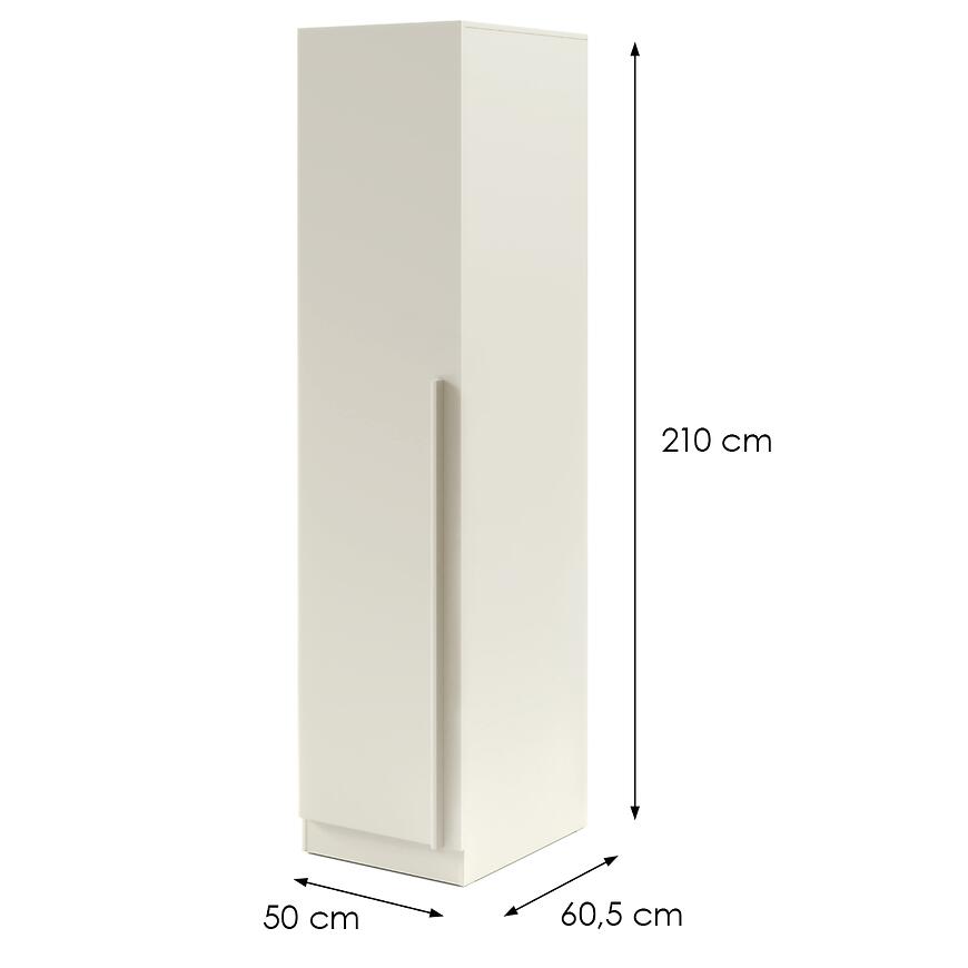 Szafa o wysokości 210 cm i głębokości 60,5 cm zapewnia komfortowe przechowywanie odzieży o różnej długości. Klasyczne drzwi umożliwiają łatwy dostęp do całej zawartości, co sprawdza się szczególnie w codziennym użytkowaniu.