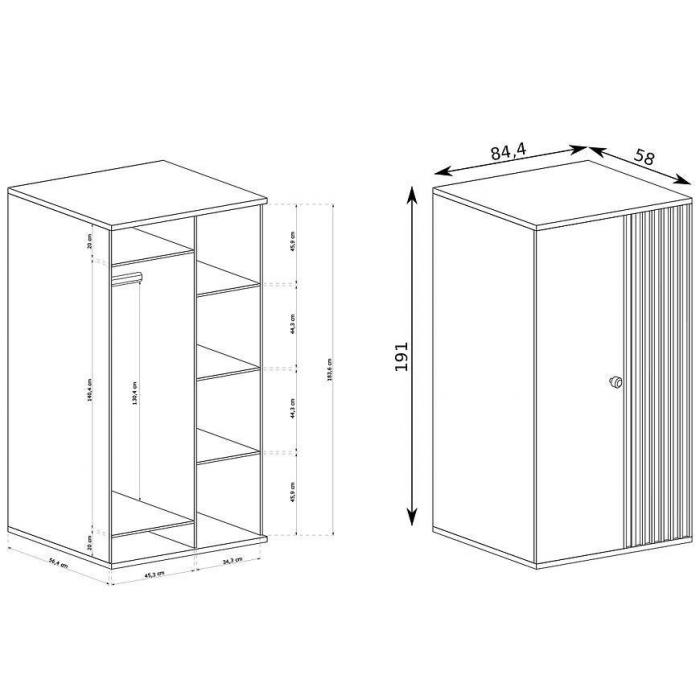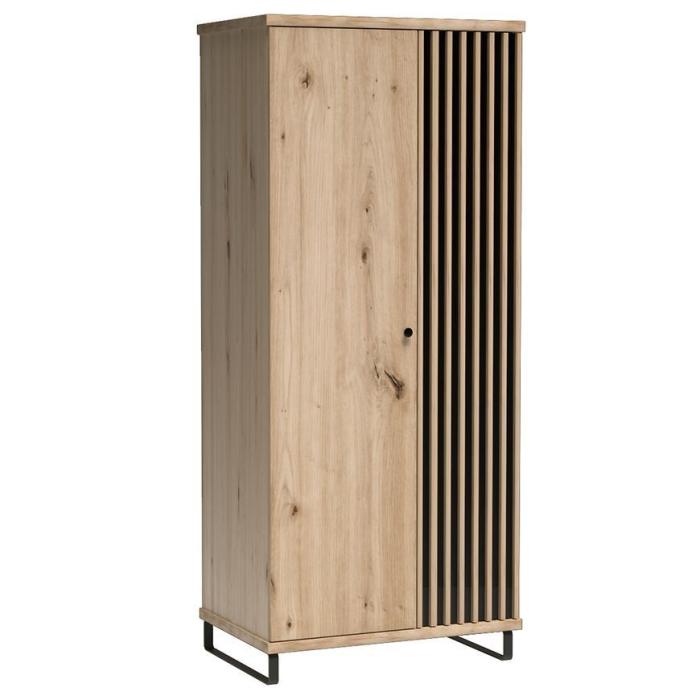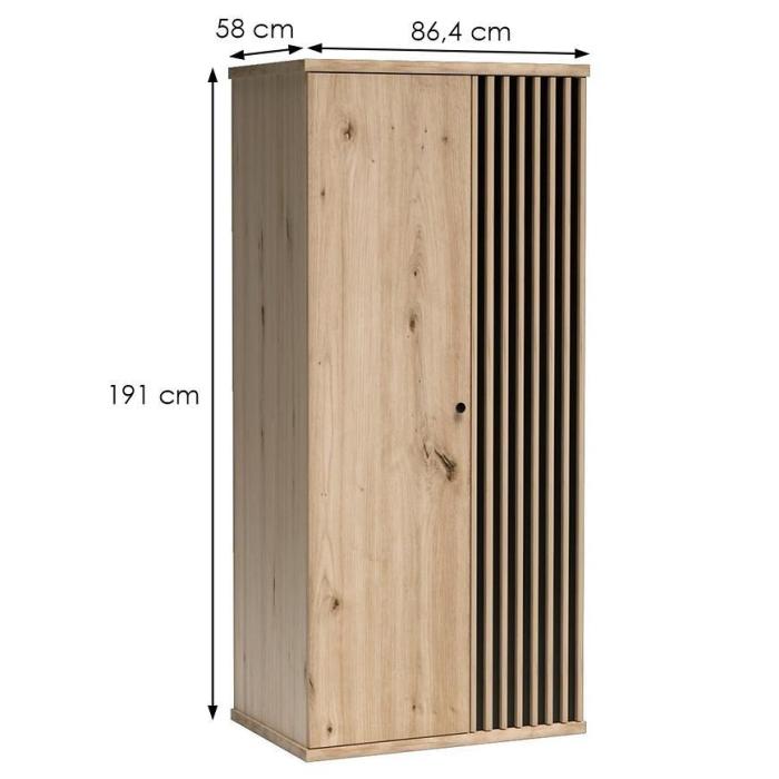 Wygląd szafy Cali zachwyci każdego zwolennika eleganckiego, a zarazem ciekawego stylu. Szafa posiada wystarczającą ilość miejsca na ubrania oraz na inne przedmioty. Jest to niezbędny element wyposażenia w każdym domu, garderobie czy przedpokoju. Materiał wykonania to płyta wiórowa laminowana.