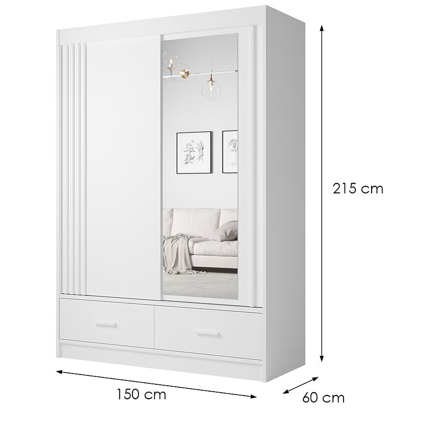 Szafa Canada o szerokości 150 cm to praktyczne rozwiązanie dla osób poszukujących pojemnego i estetycznego mebla do przechowywania. Dzięki minimalistycznej formie i białemu, matowemu wykończeniu doskonale wpisuje się w nowoczesne aranżacje wnętrz. To idealna szafa do sypialni, garderoby lub przedpokoju, która łączy elegancję z wygodą użytkowania.