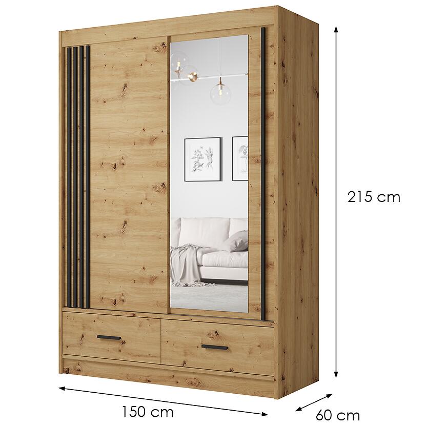 Szafa Canada 150 cm – nowoczesna szafa dwudrzwiowa z lustrem dąb artisan
