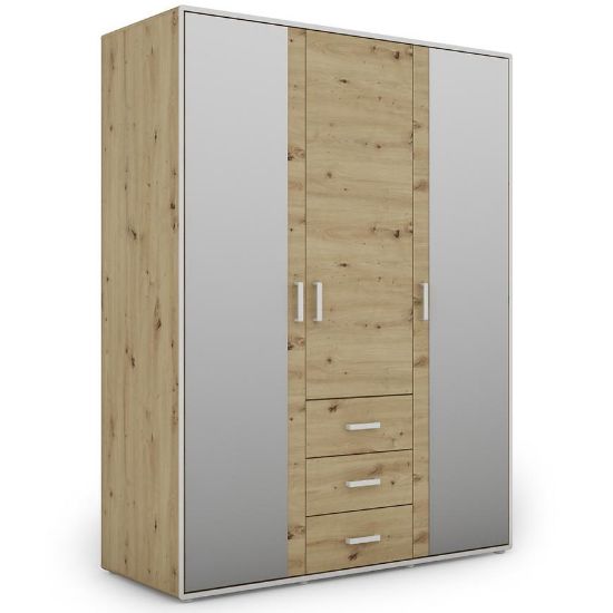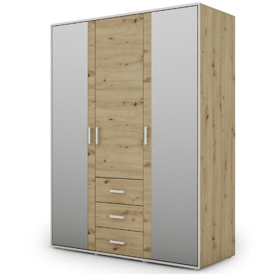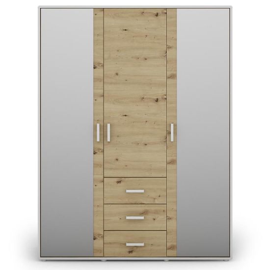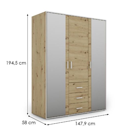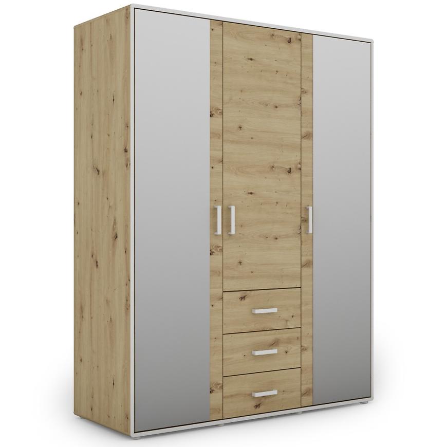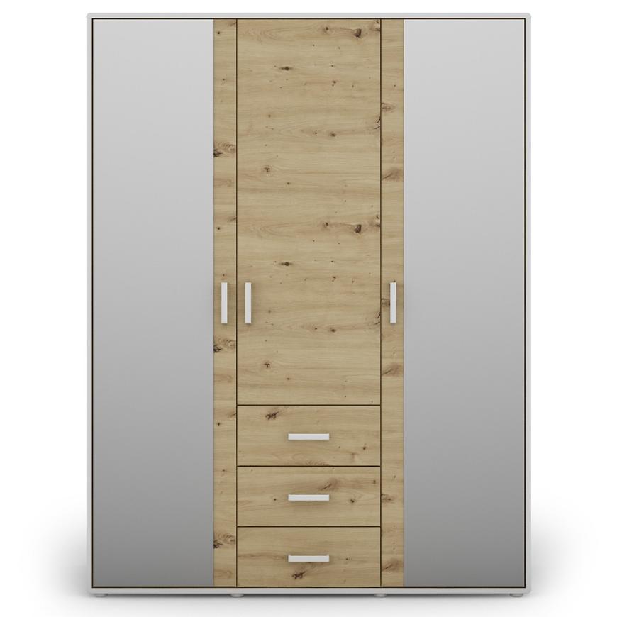 Szafa Capannoli 3s 3d z lustrem w kolorze dąb artisan z białymi elementami to idealne połączenie praktyczności i estetyki. Klasyczne drzwi otwierają się, ujawniając przemyślanie zaplanowaną przestrzeń przechowywania. Wnętrze szafy zostało starannie zaprojektowane, z myślą o organizacji Twojej garderoby.