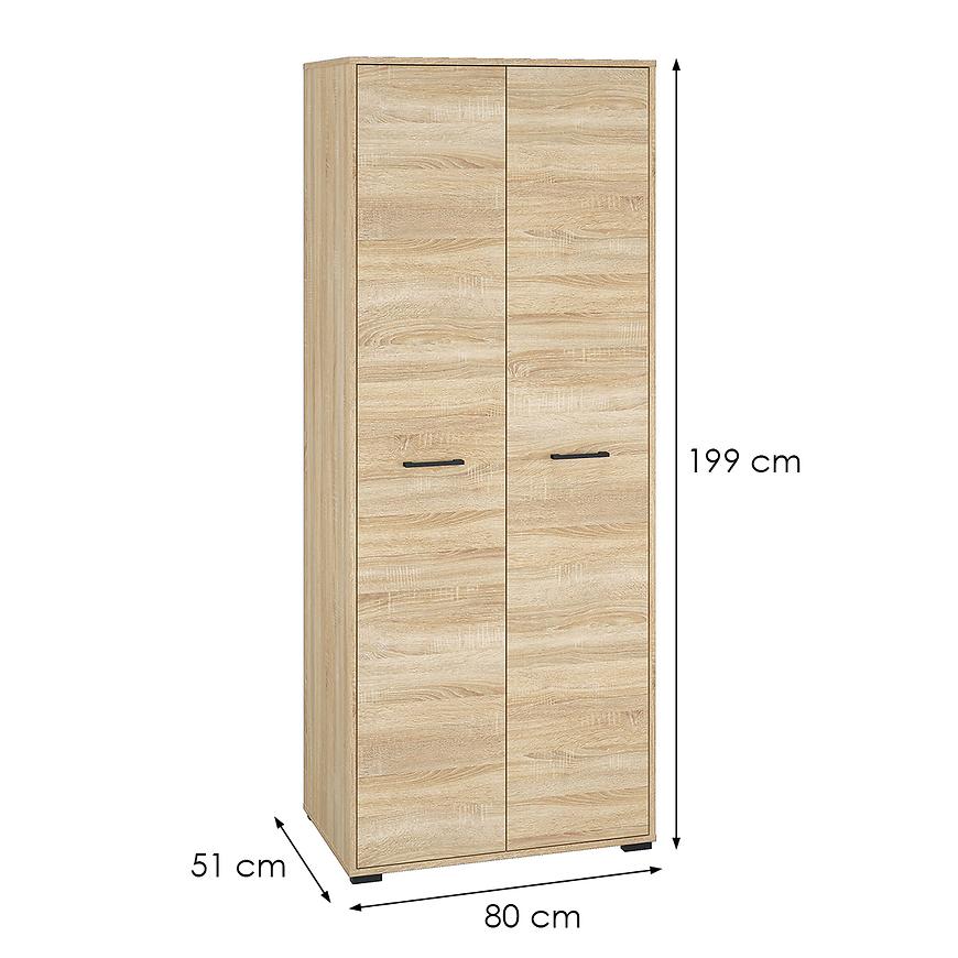 Szafa Caro 22 w kolorze dąb sonoma to wyjątkowy mebel o imponujących wymiarach: 199 cm wysokości, 80 cm szerokości i 51 cm głębokości, oferujący dużo miejsca do przechowywania. Ten klasyczny model charakteryzuje się prostym, ale efektownym designem, który doskonale wkomponuje się w różnorodne aranżacje wnętrz.