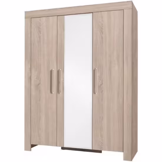 Szafa z drzwiami uchylnymi Cezar to doskonały wybór do garderoby, przedpokoju, salonu czy sypialni. Kolor frontów i korpusu sprawiają, że wpasuje się w większość aranżacji. Jej wnętrze jest pojemne i pomieści zarówno ubrania jak i inne akcesoria. Szafa jest 3-drzwiowa oraz posiada lustro, które optycznie powiększy pomieszczenie..
