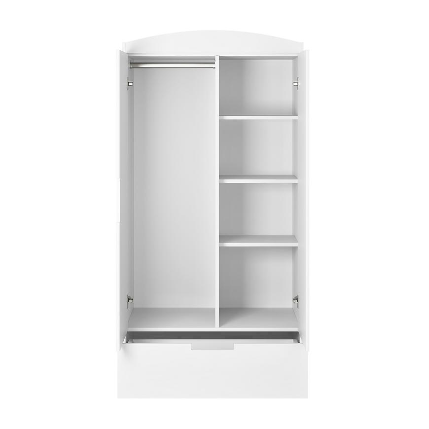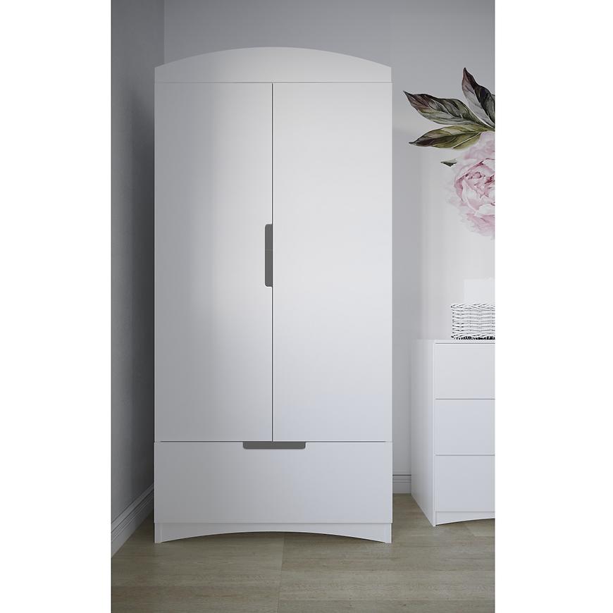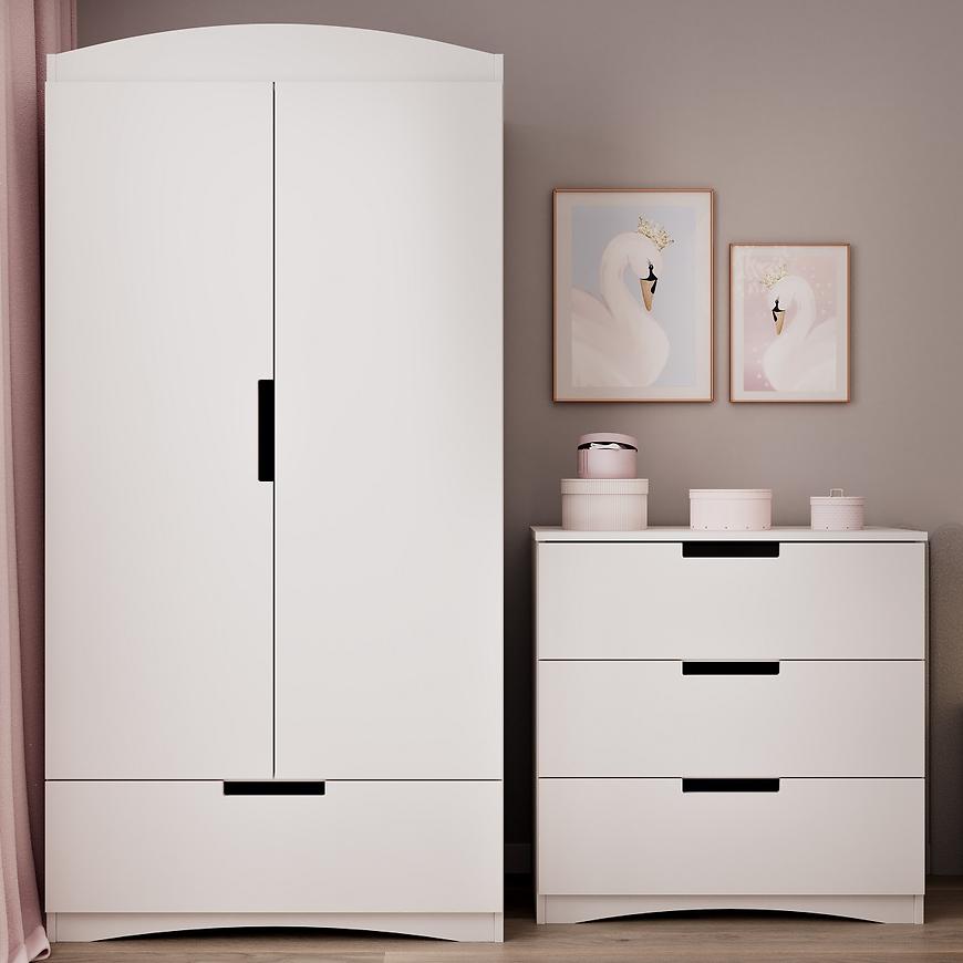 Prosta, nowoczesna forma i klasyczne dwudrzwiowe skrzydła nadają wnętrzu elegancji i funkcjonalności. Klasyczne drzwi sprawiają, że szafa jest łatwa w obsłudze, a jednocześnie harmonijnie wpisuje się w kolekcję Classic.Biała kolorystyka frontów oraz korpusu tworzy efektowny, neutralny podkład, który można łatwo dostosować do różnych stylów wystroju wnętrza. Matowe wykończenie frontów nadaje subtelności, podczas gdy płyta wiórowa lakierowana i laminowana w konstrukcji zapewnia trwałość i solidność.