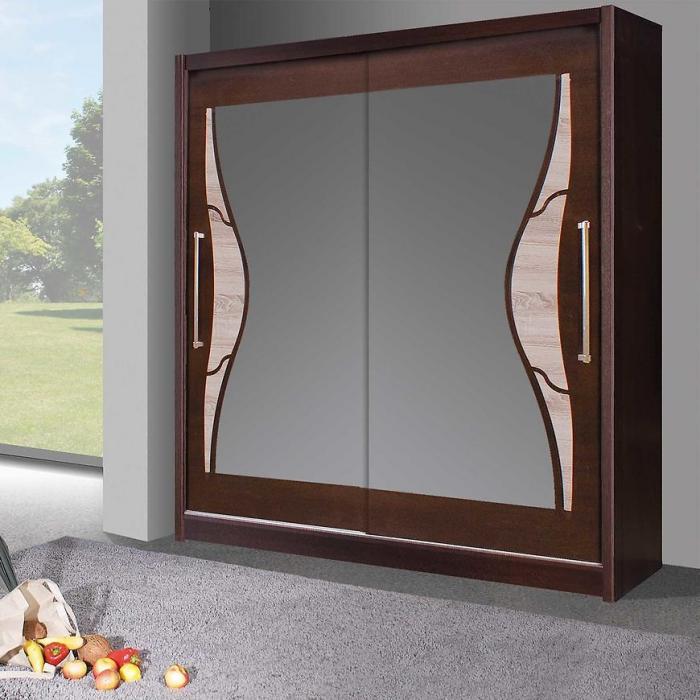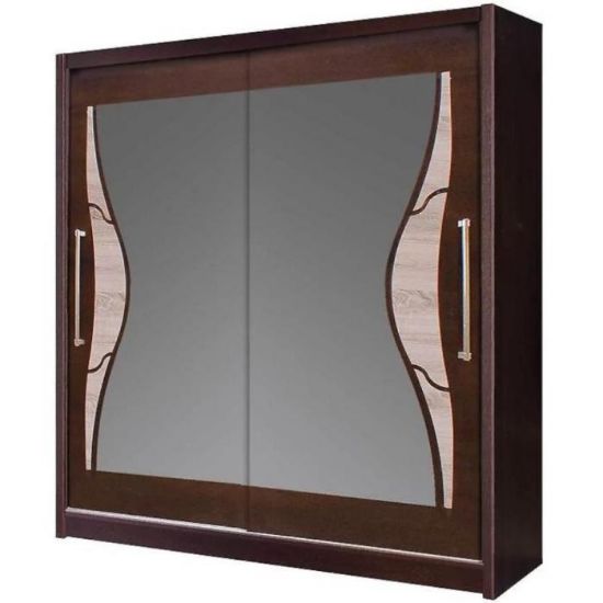 Szafa przesuwana to propozycja do pokoju dziennego, ale znajdzie swoje miejsce również w innym pomieszczeniu, jak na przykład - przedpokój czy garderobie. Materiał wykonania to płyta wiórowa laminowana/płyta MDF. Mebel posiada półki oraz drążek na ubrania. Szafa posiada również lustro, które sprawi, że pomieszczenie stanie się optycznie większe. Nowoczesny styl mebli wpadnie do gustu każdemu, kto poszukuje eleganckiego, klasycznego, a zarazem nowoczesnego umeblowania. Idealnie wpasuje się w większość aranżacji. Przeznaczona do samodzielnego montażu.