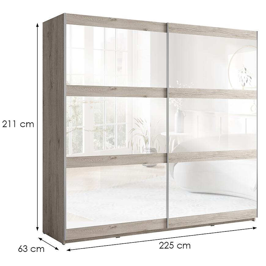 Dzięki dużym wymiarom szafa Cosmo Dąb Oslo oferuje znaczną przestrzeń do przechowywania. Wnętrze szafy umożliwia wygodne rozmieszczenie odzieży wiszącej, składanej oraz akcesoriów, co czyni ją praktycznym wyborem do sypialni, garderoby lub pokoju młodzieżowego. Brak szuflad pozwala maksymalnie wykorzystać przestrzeń wewnętrzną na drążki i półki, dostosowując układ do indywidualnych potrzeb. Szafa przesuwna 225 cm to rozwiązanie dla osób, które cenią porządek i chcą mieć wszystkie ubrania w jednym miejscu.