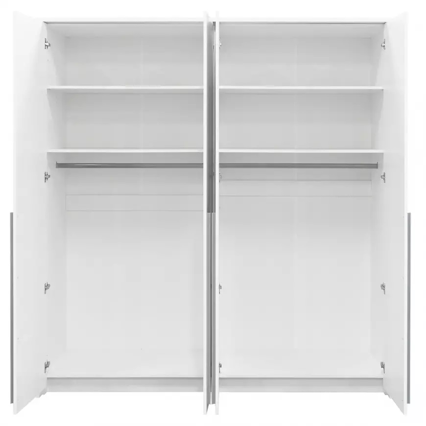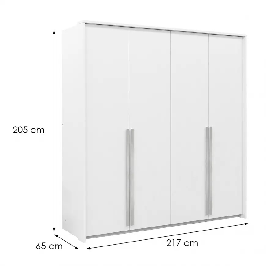 Szafa czterodrzwiowa Genua 210 to idealne rozwiązanie dla osób ceniących nowoczesny design i funkcjonalność. Wykonana z wysokiej jakości płyty wiórowej laminowanej, charakteryzuje się trwałością i estetyką, która doskonale wpisuje się w trendy współczesnego wnętrzarstwa. Dostępna w eleganckim białym kolorze, szafa Genua 210 z pewnością doda klasy każdemu pomieszczeniu. Matowe wykończenie korpusu i frontów nadaje jej nowoczesnego i minimalistycznego wyglądu, który harmonijnie współgra z różnymi stylami aranżacji wnętrz.