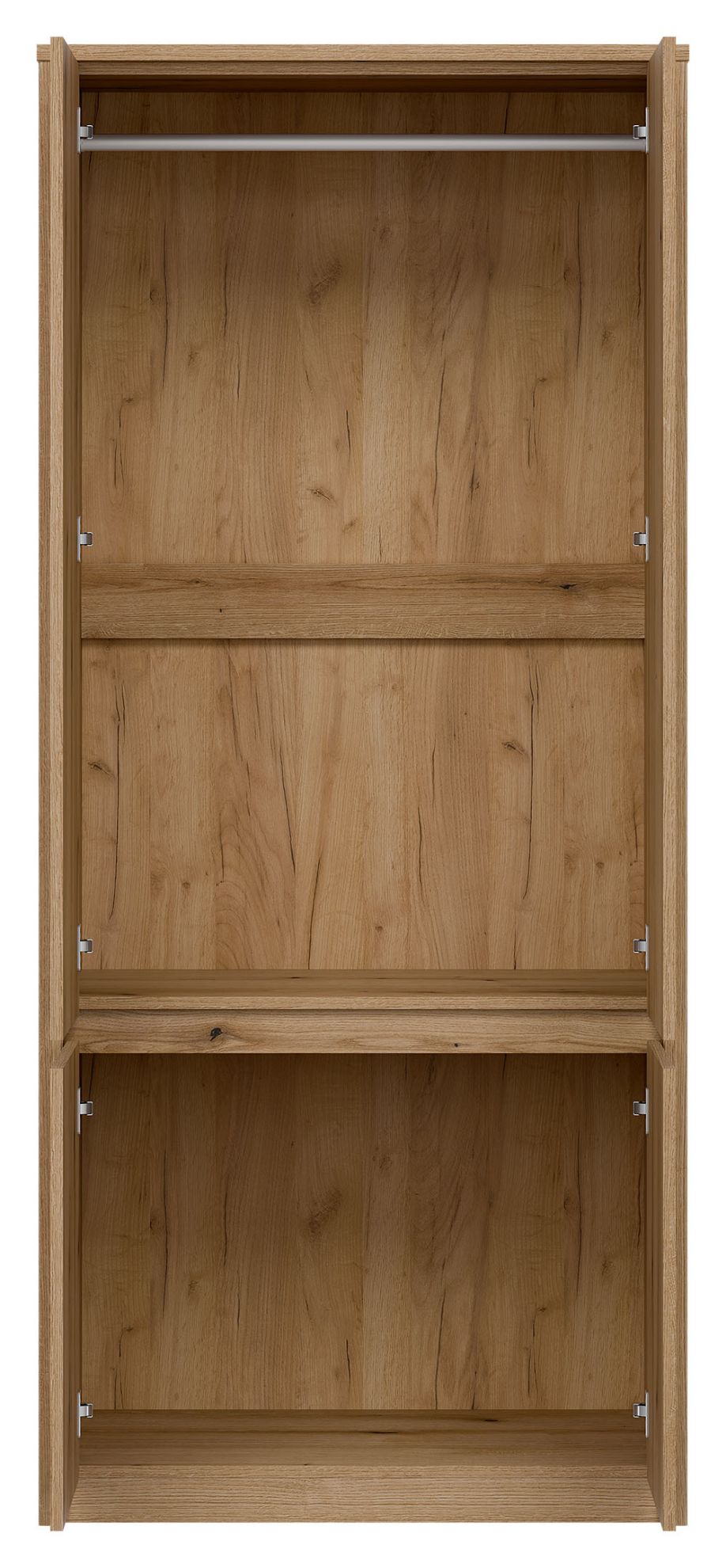 Zarówno liczba drzwi, jak i ich uchylne mechanizmy sprawiają, że korzystanie z szafy jest niezwykle wygodne, umożliwiając łatwy dostęp do przechowywanych rzeczy. Brak szuflad to rozwiązanie dla osób, które preferują otwartą przestrzeń wewnątrz szafy, co ułatwia organizację ubrań i innych akcesoriów.