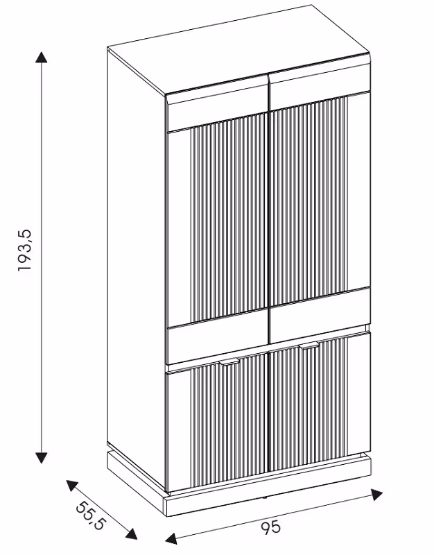 Fronty wykonane z matowej płyty MDF dostępne są w dwóch subtelnych wariantach kolorystycznych – eleganckim antracycie oraz ciepłym kaszmirze. Ich powierzchnię zdobią pionowe frezowania, które nadają meblom nowoczesny, a zarazem nieprzesadzony charakter. Złote uchwyty wprowadzają do wnętrza nutę luksusu i doskonale kontrastują z matowym wykończeniem, tworząc wyrazisty, ale spójny akcent dekoracyjny.