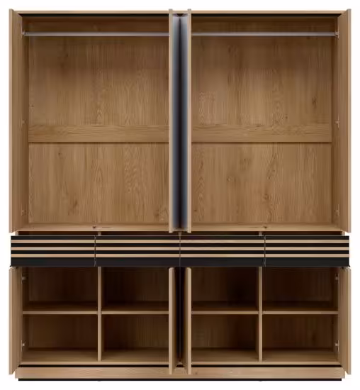 W skład kolekcji wchodzą m.in. łóżka, szafka nocna, komody i szafy ubraniowe, zaprojektowane z myślą o codziennym komforcie użytkowania. Szuflady z prowadnicami kulkowymi i pełnym wysuwem gwarantują łatwy dostęp do przechowywanych przedmiotów, a mechanizm push-to-open w górnych drzwiach i szufladach pozwala na intuicyjne otwieranie bez potrzeby stosowania uchwytów – wystarczy lekki nacisk.