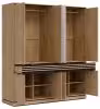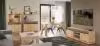 Dodatkowym atutem są zawiasy z systemem cichego domyku, które zwiększają komfort użytkowania, zapobiegając przypadkowemu trzaskaniu i wydłużając trwałość mebli. Opcjonalne podświetlenie LED dostępne w witrynach dodaje całości elegancji i pozwala wyeksponować ulubione dekoracje lub kolekcje, jednocześnie wprowadzając przytulny klimat do wnętrza.
