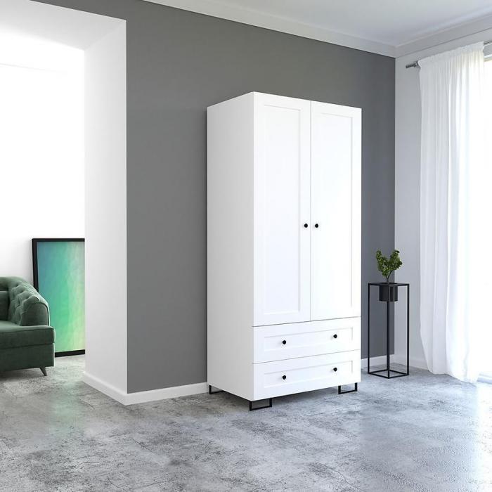 Szafa z drzwiami uchylnymi Dalia to doskonały wybór do garderoby, przedpokoju, salonu czy sypialni. Kolor frontów i korpusu sprawiają, że wpasuje się w większość aranżacji. Jej wnętrze jest pojemne i pomieści zarówno ubrania jak i inne akcesoria. Szafa jest 2-drzwiowa oraz posiada dwie szuflady.