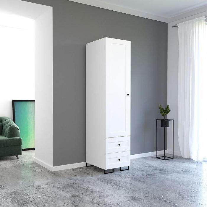 Szafa z drzwiami uchylnymi Dalia to doskonały wybór do garderoby, przedpokoju, salonu czy sypialni. Kolor frontów i korpusu sprawiają, że wpasuje się w większość aranżacji. Jej wnętrze jest pojemne i pomieści zarówno ubrania jak i inne akcesoria. Szafa jest 1-drzwiowa oraz posiada dwie szuflady.
