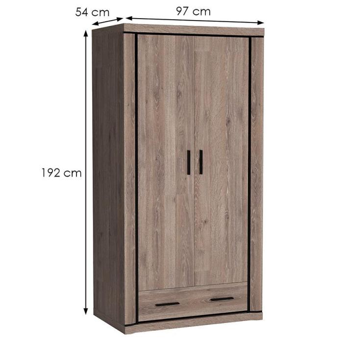 Wygląd szafy Dallas zachwyci każdego zwolennika nowoczesnego, a zarazem uniwersalnego stylu. Szafa posiada wystarczającą ilość miejsca na ubrania oraz na inne przedmioty. Jest to niezbędny element wyposażenia w każdym domu, garderobie czy pokoju dziennym. Materiał wykonania to płyta wiórowa laminowana.