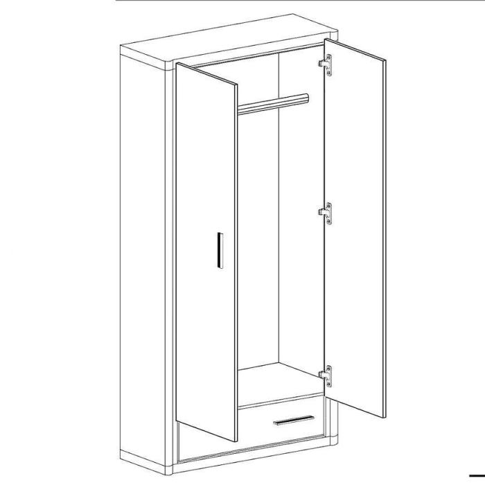 Szafa z drzwiami uchylnymi Dallas to doskonały wybór do garderoby czy sypialni. Kolor frontów i korpusu sprawiają, że wpasuje się w większość aranżacji. Jej wnętrze jest pojemne i pomieści zarówno ubrania jak i inne akcesoria.
