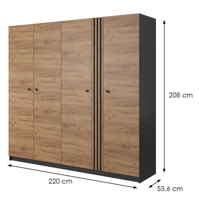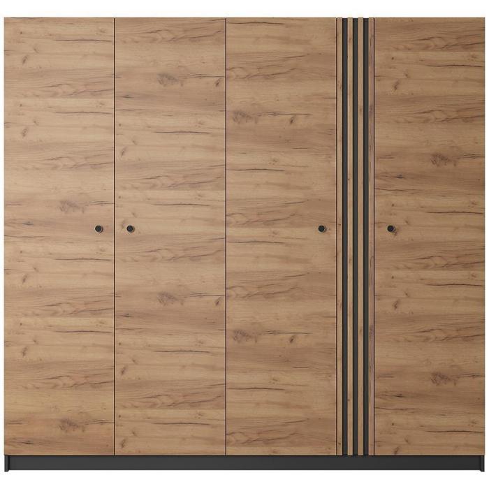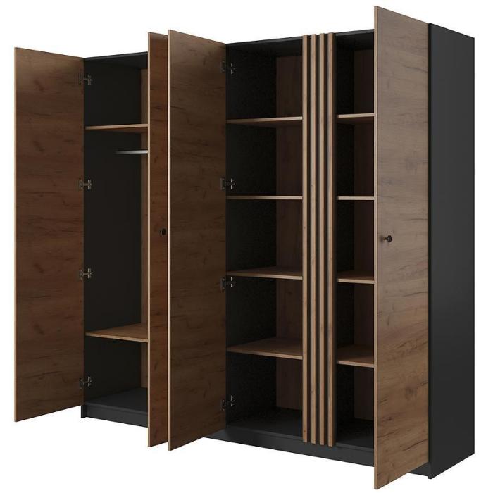 Szafa z drzwiami uchylnymi Deco to doskonały wybór do garderoby, przedpokoju, salonu czy sypialni. Kolor frontów i korpusu sprawiają, że wpasuje się w większość aranżacji. Jej wnętrze jest pojemne i pomieści zarówno ubrania jak i inne akcesoria. Szafa jest 4-drzwiowa.
