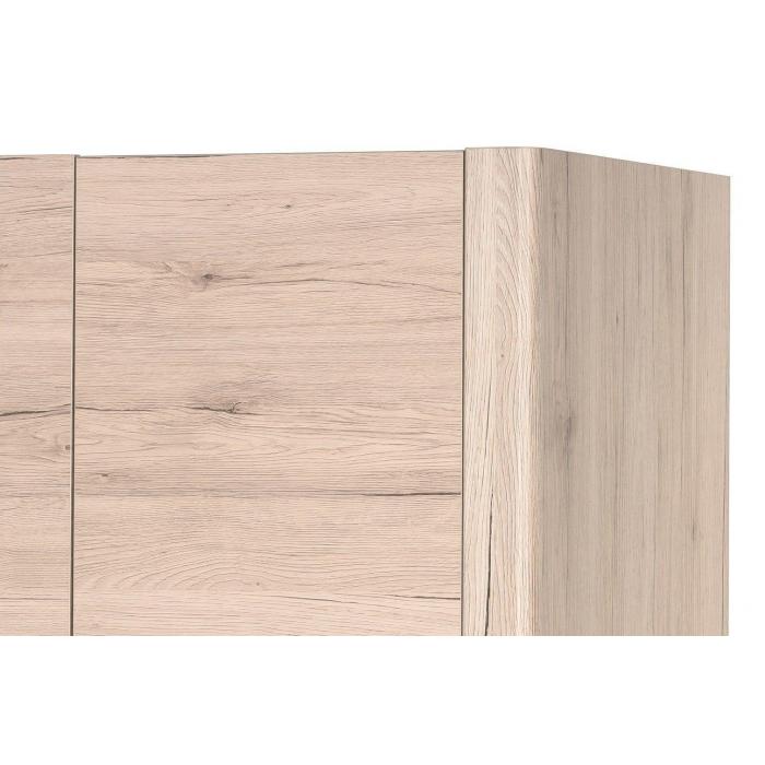 Wygląd szafy Desjo zachwyci każdego zwolennika uniwersalnego, a zarazem eleganckiego i ciekawego stylu. Szafa posiada wystarczającą ilość miejsca na ubrania oraz na inne przedmioty. Jest to niezbędny element wyposażenia w każdym domu, garderobie czy przedpokoju. Materiał wykonania to płyta laminowana oraz płyta MDF.