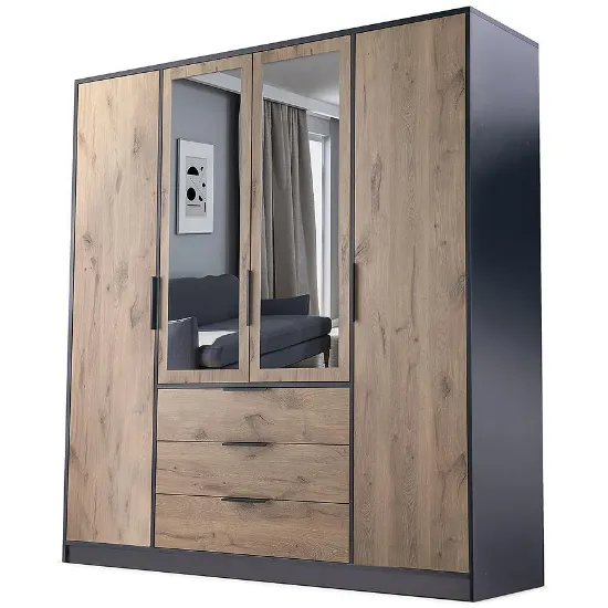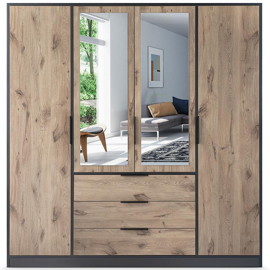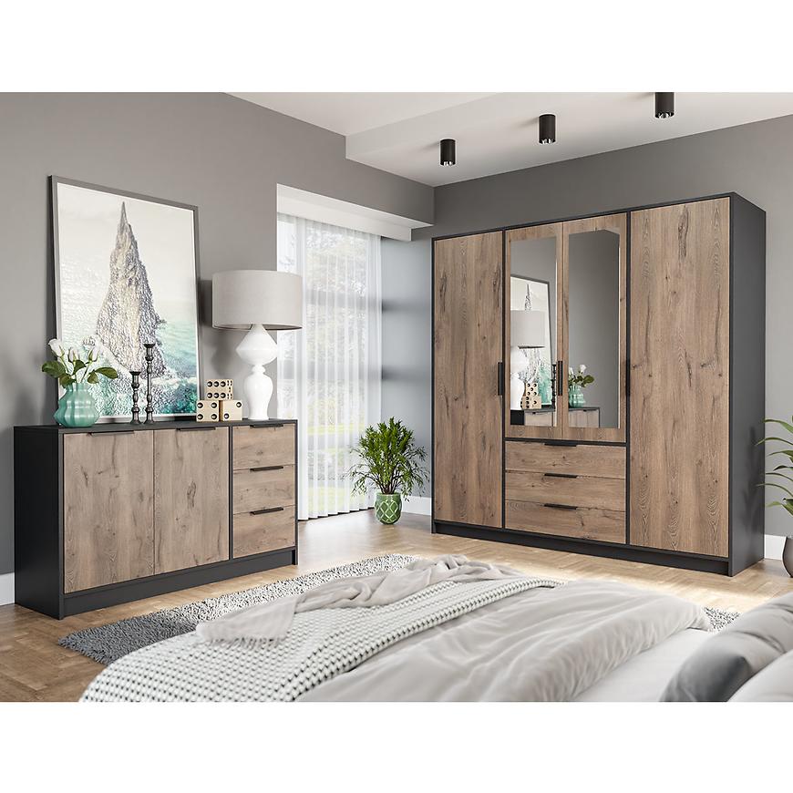 Szafa DUARTE D4 czarny/dab viking/lustro