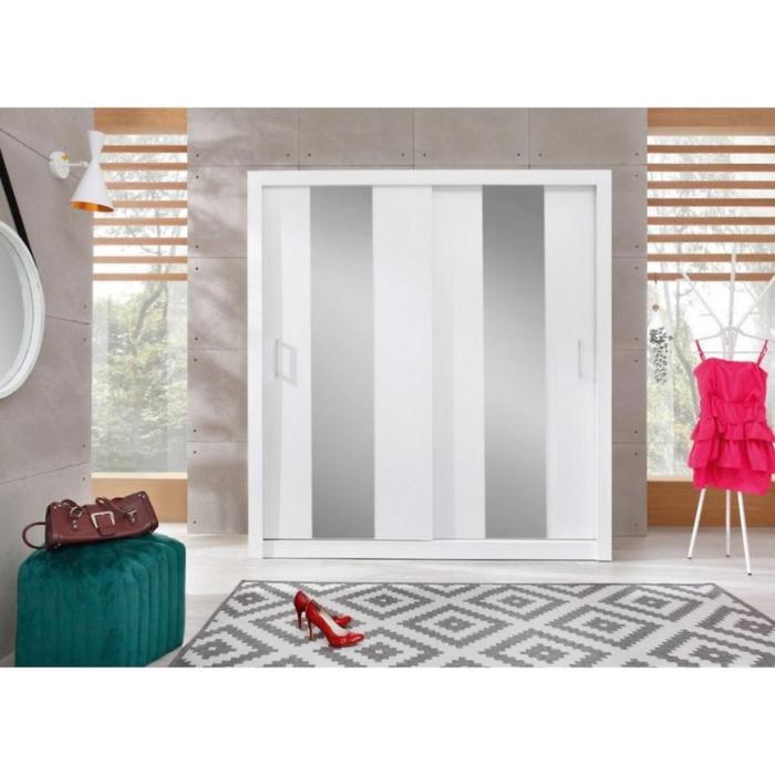 Szafa w kolorze białym to propozycja do pokoju dziennego, ale znajdzie swoje miejsce również w innym pomieszczeniu, jak na przykład - przedpokój czy garderobie. Materiał wykonania to płyta laminowana. Szafa w komplecie posiada drążek, trzy półki oraz lustro, które sprawi, że pomieszczenie stanie się optycznie większe. Nowoczesny styl mebli wpadnie do gustu każdemu, kto poszukuje eleganckiego, klasycznego, a zarazem nowoczesnego umeblowania. Idealnie wpasuje się w większość aranżacji. Przeznaczona do samodzielnego montażu. Mebel do samodzielnego montażu.