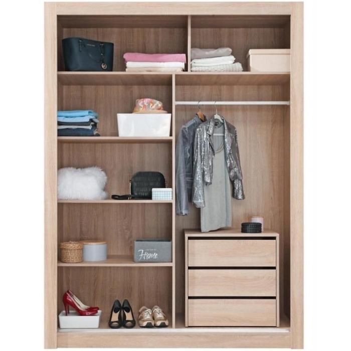 Wygląd szafy Duca zachwyci każdego zwolennika nowoczesnego, a zarazem uniwersalnego stylu. Szafa posiada wystarczającą ilość miejsca na ubrania oraz na inne przedmioty. Jest to niezbędny element wyposażenia w każdym domu, garderobie czy przedpokoju. Materiał wykonania to płyta wiórowa laminowana.