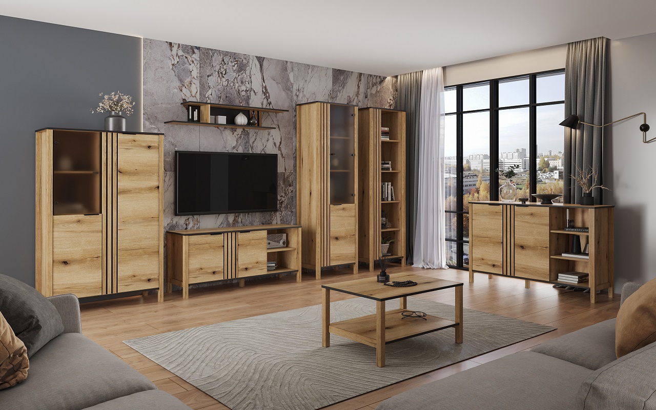 Montaż szafy jest prosty i intuicyjny, umożliwiając samodzielne zestawienie mebla zgodnie z własnymi preferencjami. Helios to kompleksowa kolekcja mebli do pokoju dziennego, co pozwala na spójne urządzenie całej przestrzeni mieszkalnej.