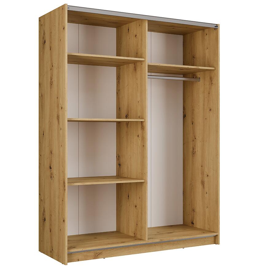Szafa dwudrzwiowa z lustrem Bayadero 10 III to propozycja dla osób, które szukają mebla o wyraźnym charakterze, ale jednocześnie praktycznego w codziennym użytkowaniu. Przemyślany podział wnętrza, system drzwi przesuwnych oraz wybarwienie dąb artisan sprawiają, że jest to funkcjonalna szafa do sypialni o estetyce dopasowanej do współczesnych trendów wnętrzarskich.