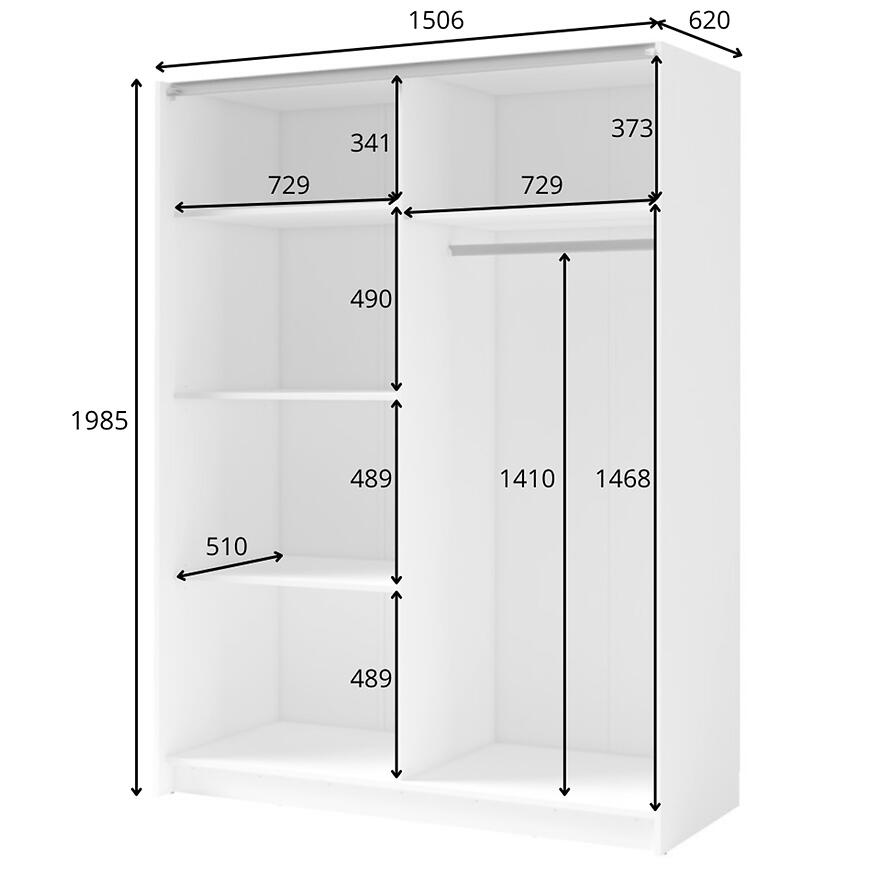 Układ wewnętrzny został zaprojektowany z myślą o zróżnicowanym przechowywaniu. W środku znajdują się cztery półki, które sprawdzą się na złożone ubrania, pojemniki, tekstylia domowe czy sezonowe akcesoria. Ich rozstaw umożliwia logiczne posegregowanie garderoby – osobno swetry, osobno koszule czy torby.
