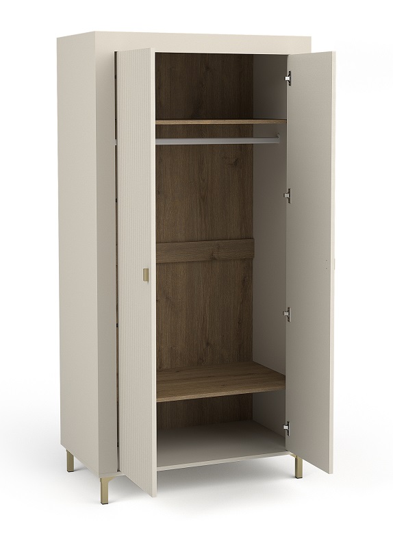 Szafa dwudrzwiowa Mossa MO1 w kolorze cashmere to elegancki i funkcjonalny mebel, który idealnie sprawdzi się w nowoczesnych wnętrzach. Wyjątkowy design szafy sprawia, że doskonale wpisuje się ona w aranżacje zarówno pokoju dziennego, młodzieżowego, jak i sypialni, dodając pomieszczeniom subtelnego charakteru oraz harmonii. Kolor cashmere, który dominuje w tym modelu, wprowadza do wnętrza ciepło i delikatność, jednocześnie nadając meblowi nowoczesny i minimalistyczny wygląd.