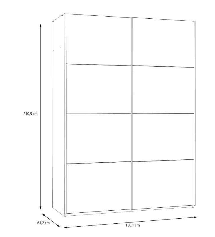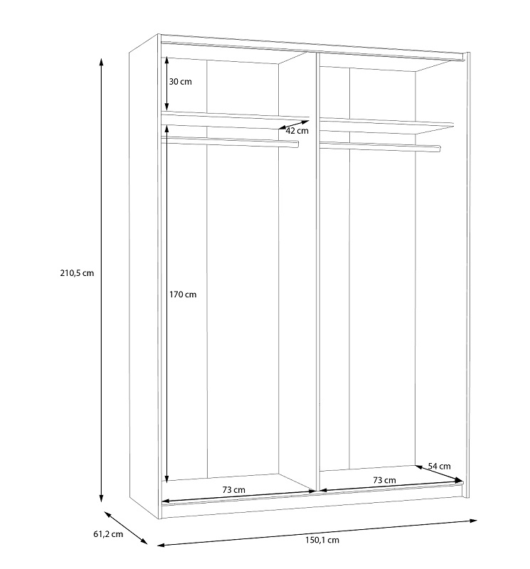 Szafa Ossett 150 charakteryzuje się przemyślaną konstrukcją. Posiada drzwi przesuwne, które są nie tylko wygodne w użytkowaniu, ale także oszczędzają miejsce, co jest niezwykle istotne w mniejszych pomieszczeniach. Szerokość szafy wynosi 150 cm, a głębokość 61,20 cm, co zapewnia odpowiednią ilość przestrzeni do przechowywania ubrań i akcesoriów.
