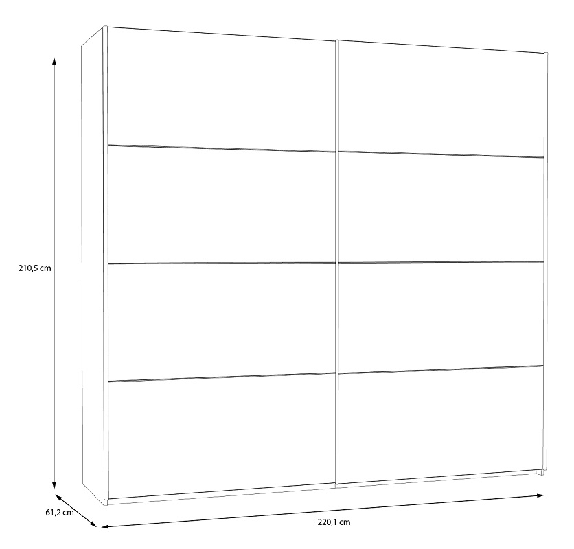 Szafa Ossett 220 ma imponujące wymiary: szerokość 220,10 cm i głębokość 61,20 cm. To sprawia, że jest niezwykle pojemna, oferując dużo miejsca do przechowywania ubrań, obuwia oraz innych akcesoriów. Drzwi przesuwne to rozwiązanie, które nie tylko oszczędza przestrzeń, ale również dodaje szafie nowoczesnego wyglądu. Mechanizm przesuwania drzwi jest płynny i cichy, co zwiększa komfort użytkowania.