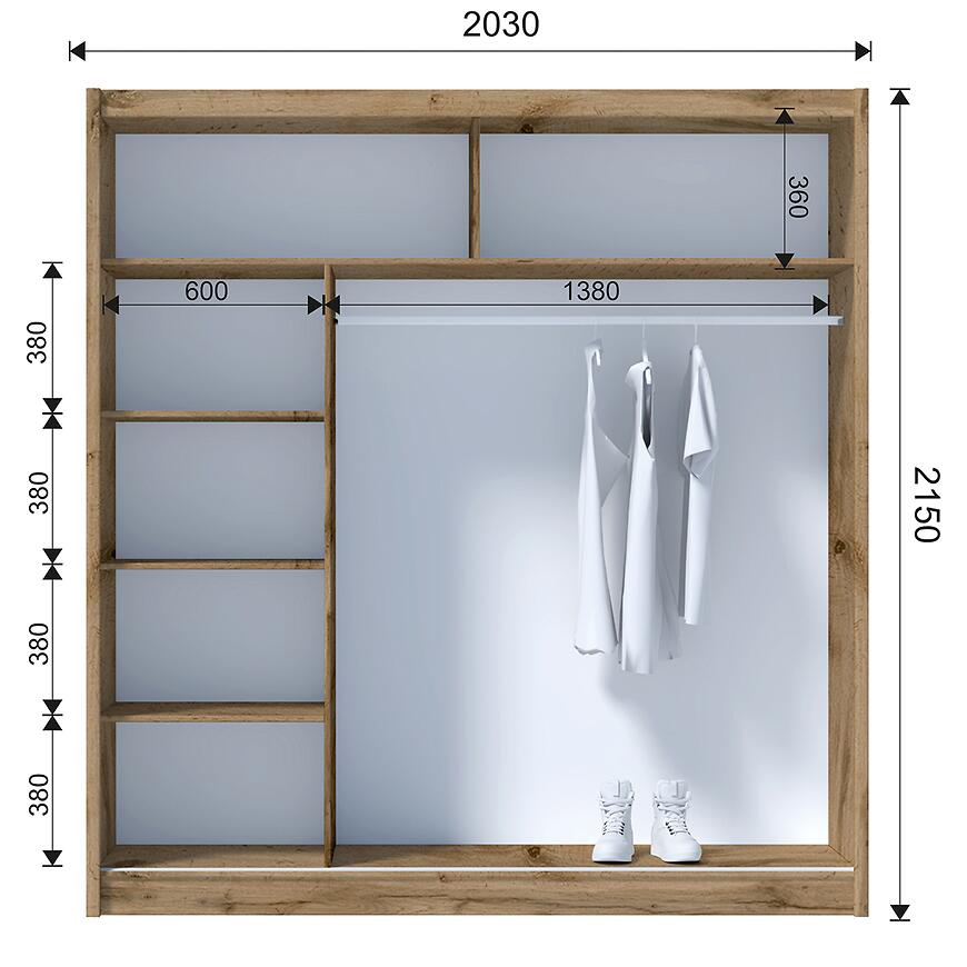 Szafa przesuwna 203 cm – funkcjonalne wnętrze z drążkiem i 5 półkami