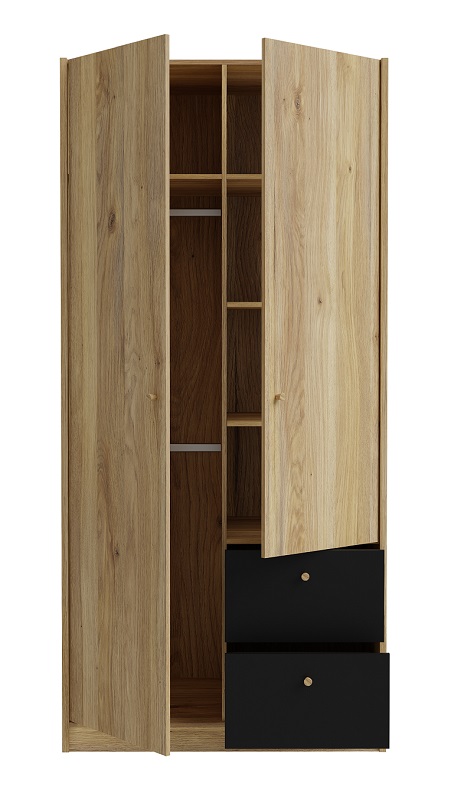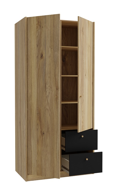 Szafa dwudrzwiowa z szufladami Coxim CXMS921L to wyraz stylu i funkcjonalności, który doskonale wpisuje się w potrzeby współczesnych wnętrz młodzieżowych. Wykonana z solidnej płyty meblowej, szafa ta charakteryzuje się wyjątkową trwałością i estetyką. Wykończenie w dekorze dąb mauvella z eleganckimi czarnymi akcentami nadaje jej nowoczesny i jednocześnie przytulny wygląd, który z pewnością zachwyci młodych użytkowników.
