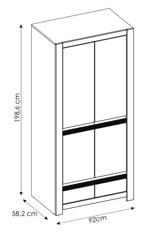 Szafa dwudrzwiowa z szufladami Novi 2D2S NVIS02 to doskonały wybór dla osób ceniących porządek, trwałość i elegancki wygląd. Przemyślany układ z drążkiem, półkami i pojemnymi szufladami pozwala na wygodne przechowywanie odzieży i akcesoriów, a minimalistyczna forma podkreśli nowoczesny charakter każdego wnętrza.