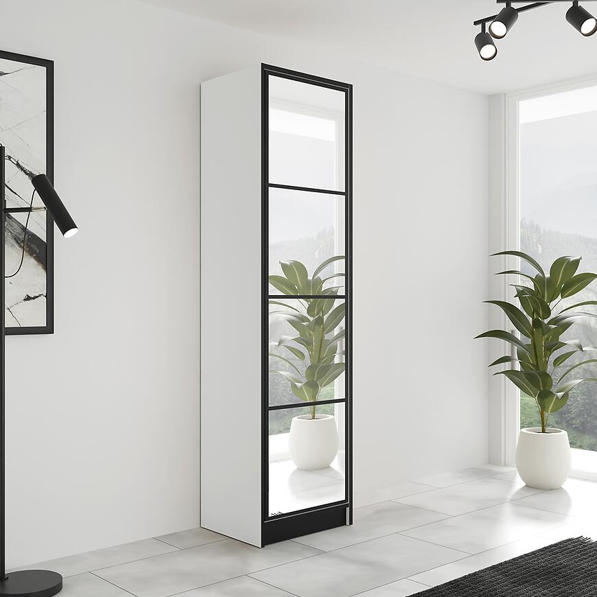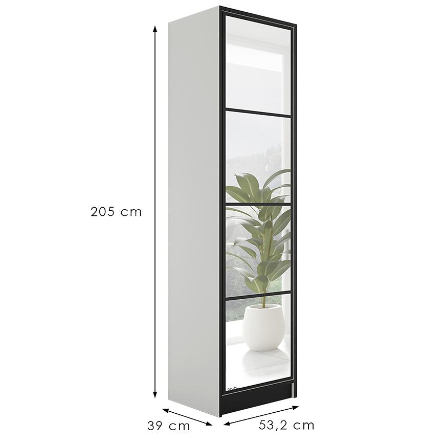 Szafa Eden 1d 53 Biały to stylowy i praktyczny mebel o nowoczesnym designie, łączący elegancję z funkcjonalnością. Posiada jednodrzwiową konstrukcję z klasycznymi drzwiami i praktycznym lustrem na froncie. Dzięki kompaktowym wymiarom (szerokość 53,2 cm, wysokość 205 cm, głębokość 39 cm) zapewnia wygodne przechowywanie przy zachowaniu niewielkiej formy. Wykonana z laminowanej płyty wiórowej w białym, matowym wykończeniu, prezentuje się ponadczasowo i pasuje do różnych aranżacji wnętrz.