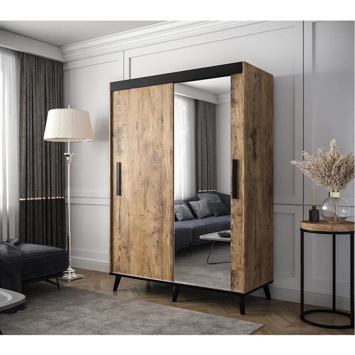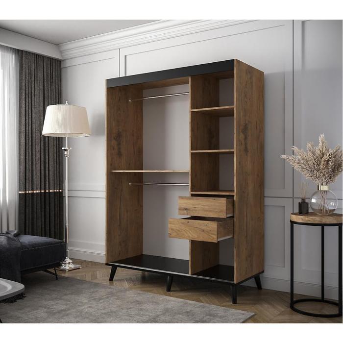 Wygląd szafy Edmonton zachwyci każdego zwolennika nowoczesnego, a zarazem ciekawego stylu. Szafa posiada wystarczającą ilość miejsca na ubrania oraz na inne przedmioty. Jest to niezbędny element wyposażenia w każdym domu, garderobie czy przedpokoju. Materiał wykonania to płyta wiórowa laminowana.