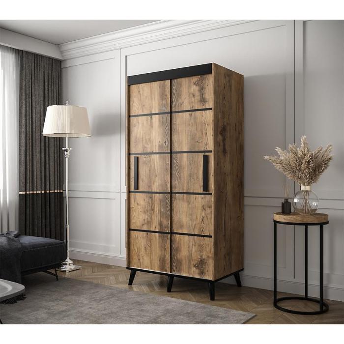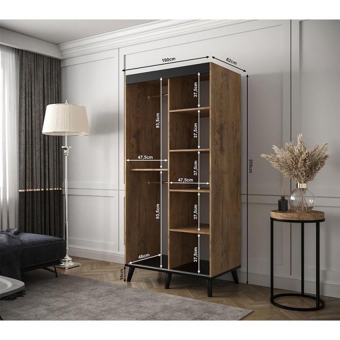 Wygląd szafy Edmonton zachwyci każdego zwolennika nowoczesnego, a zarazem ciekawego stylu. Szafa posiada wystarczającą ilość miejsca na ubrania oraz na inne przedmioty. Jest to niezbędny element wyposażenia w każdym domu, garderobie czy przedpokoju. Materiał wykonania to płyta wiórowa laminowana.