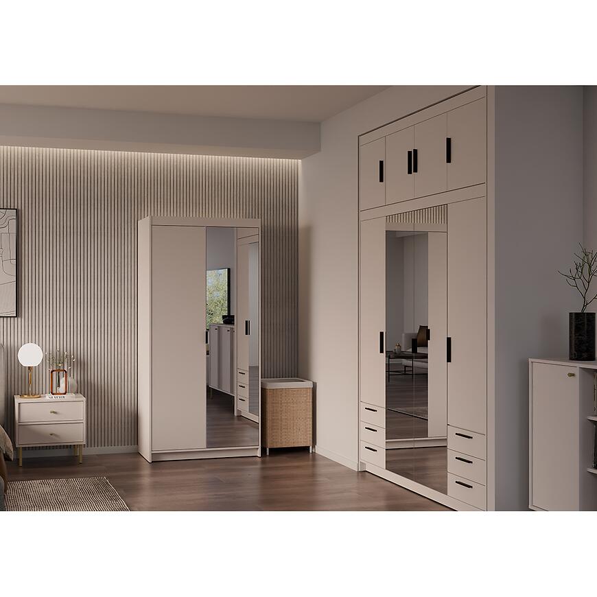 Beżowa szafa z lustrem – styl nowoczesny i spójny wygląd