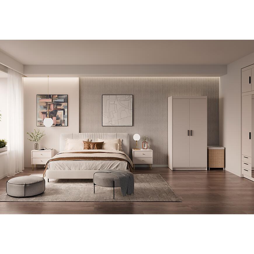 Szafa Elena 2D w kolorze beż piaskowy to propozycja dla osób, które szukają estetycznego i praktycznego mebla do sypialni, garderoby lub przedpokoju. Prosta forma, stonowana kolorystyka oraz matowe wykończenie sprawiają, że szafa doskonale wpisuje się w nowoczesne aranżacje wnętrz. Beż piaskowy ociepla przestrzeń i łatwo komponuje się z innymi meblami oraz dodatkami, zarówno jasnymi, jak i ciemniejszymi.