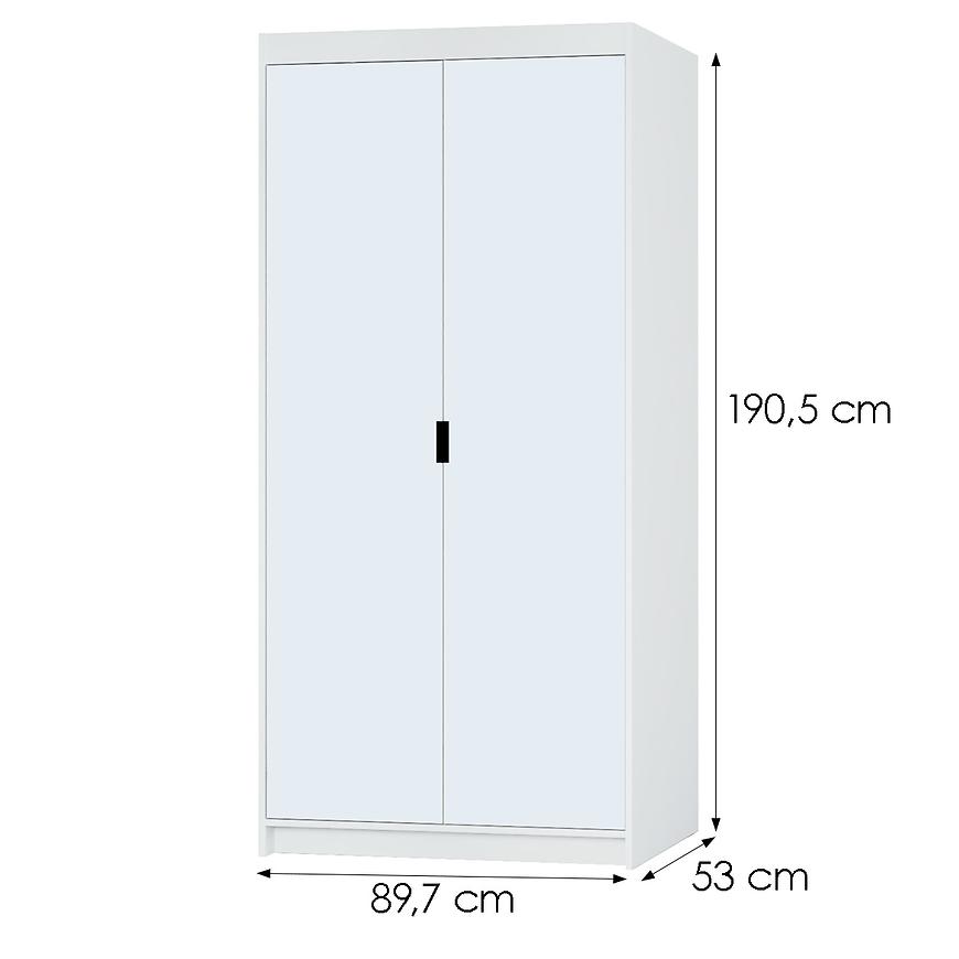 Szafa Elena 2D w kolorze białym z lustrem to elegancki i funkcjonalny mebel, który łączy w sobie nowoczesny design oraz praktyczne rozwiązania. Stanowi idealne uzupełnienie zarówno sypialni, jak i przedpokoju, oferując przestronne miejsce do przechowywania. Dwa klasyczne, dwudrzwiowe fronty nie tylko zwiększają funkcjonalność szafy, ale również optycznie powiększają przestrzeń, nadając wnętrzu lekkości.