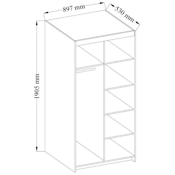 Szafa z drzwiami uchylnymi Elena to doskonały wybór do garderoby, przedpokoju, salonu czy sypialni. Kolor frontów i korpusu sprawiają, że wpasuje się w większość aranżacji. Jej wnętrze jest pojemne i pomieści zarówno ubrania jak i inne akcesoria. Szafa jest 2-drzwiowa.