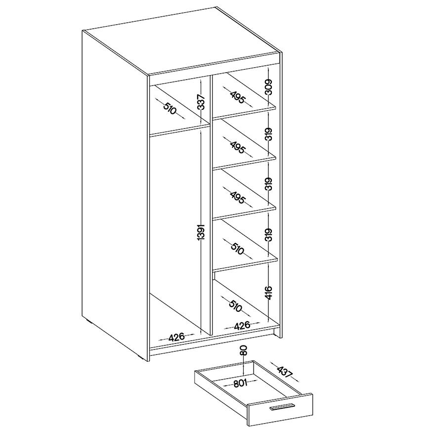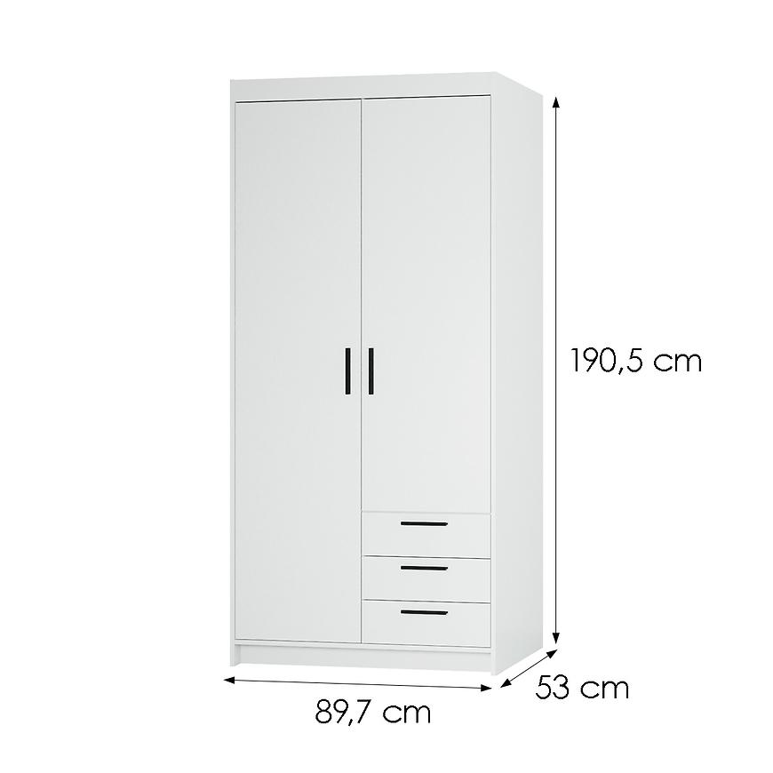 Szafa Elena 2D3S to nowoczesny i funkcjonalny mebel, który doskonale wpasuje się w różnorodne wnętrza, zarówno te minimalistyczne, jak i bardziej klasyczne. Dzięki swoim wymiarom szafa zapewnia sporą przestrzeń do przechowywania odzieży i akcesoriów, nie zajmując przy tym zbyt wiele miejsca w pomieszczeniu. Dwudrzwiowa konstrukcja oraz trzy praktyczne szuflady pozwalają na efektywne zorganizowanie wszystkich niezbędnych przedmiotów, co sprawia, że szafa będzie idealnym rozwiązaniem zarówno do sypialni, jak i przedpokoju czy garderoby.