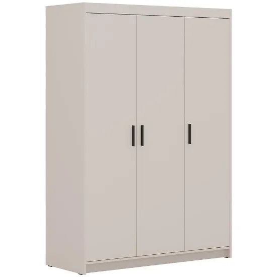 Trzydrzwiowa szafa Elena 3D beż piaskowy sprawdzi się jako główna szafa do sypialni lub praktyczny mebel do garderoby. Jej głębokość 53 cm pozwala ustawić ją również w pomieszczeniach o ograniczonej przestrzeni, bez efektu przytłoczenia wnętrza. Brak oświetlenia wewnętrznego sprzyja zachowaniu prostej, uporządkowanej formy.