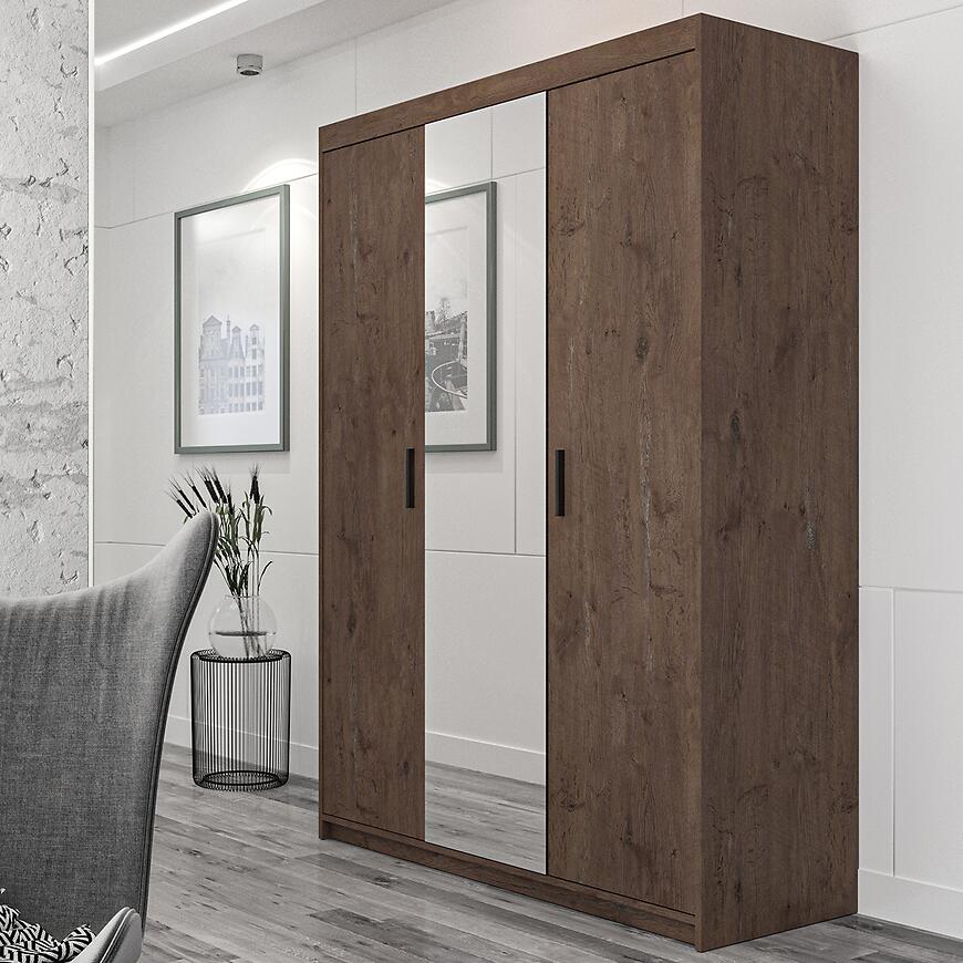 Szafa z drzwiami uchylnymi Elena to doskonały wybór do garderoby, przedpokoju, salonu czy sypialni. Kolor frontów i korpusu sprawiają, że wpasuje się w większość aranżacji. Jej wnętrze jest pojemne i pomieści zarówno ubrania jak i inne akcesoria. Szafa jest 3-drzwiowa oraz posiada lustro, które optycznie powiększy pomieszczenie.