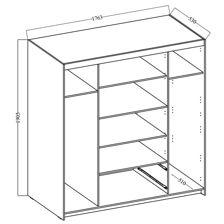 Konstrukcja frontów i korpusu opiera się na solidnej płycie wiórowej laminowanej, co zapewnia trwałość i odporność na uszkodzenia. Wyposażenie w półki i drążek umożliwiają zoptymalizowane przechowywanie ubrań, butów i innych przedmiotów, co sprawia, że szafa Elena jest nie tylko piękna, ale także praktyczna.