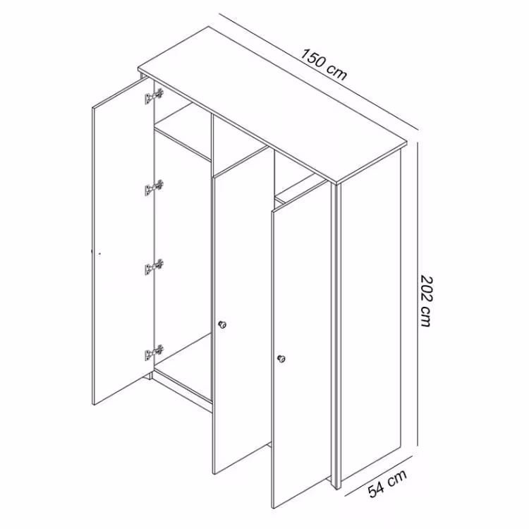 Szafa Finezja to nowoczesne rozwiązanie, które doskonale sprawdzi się w różnych wnętrzach. Jej rozmiary to szerokość 150 cm, wysokość 202 cm i głębokość 54 cm, co zapewnia odpowiednią przestrzeń do przechowywania.