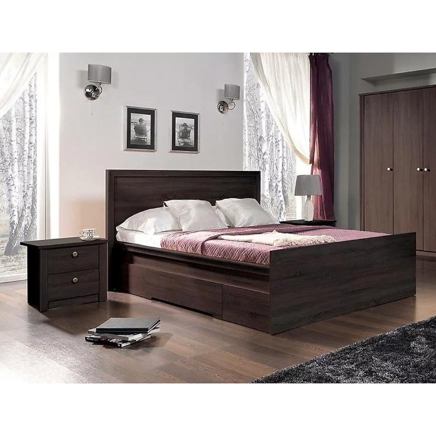 Prosty kształt szafy nadaje jej uniwersalnego charakteru. Skrzydła drzwiowe zapewniają łatwy dostęp do wnętrza i dodają szafie tradycyjnego uroku. Cała szafa utrzymana jest w ciemnym drewnopodobnym wybarwieniu, które nadaje jej elegancji i ciepła. Zarówno fronty, jak i korpus wykonane są z płyty wiórowej laminowanej o matowym wykończeniu.