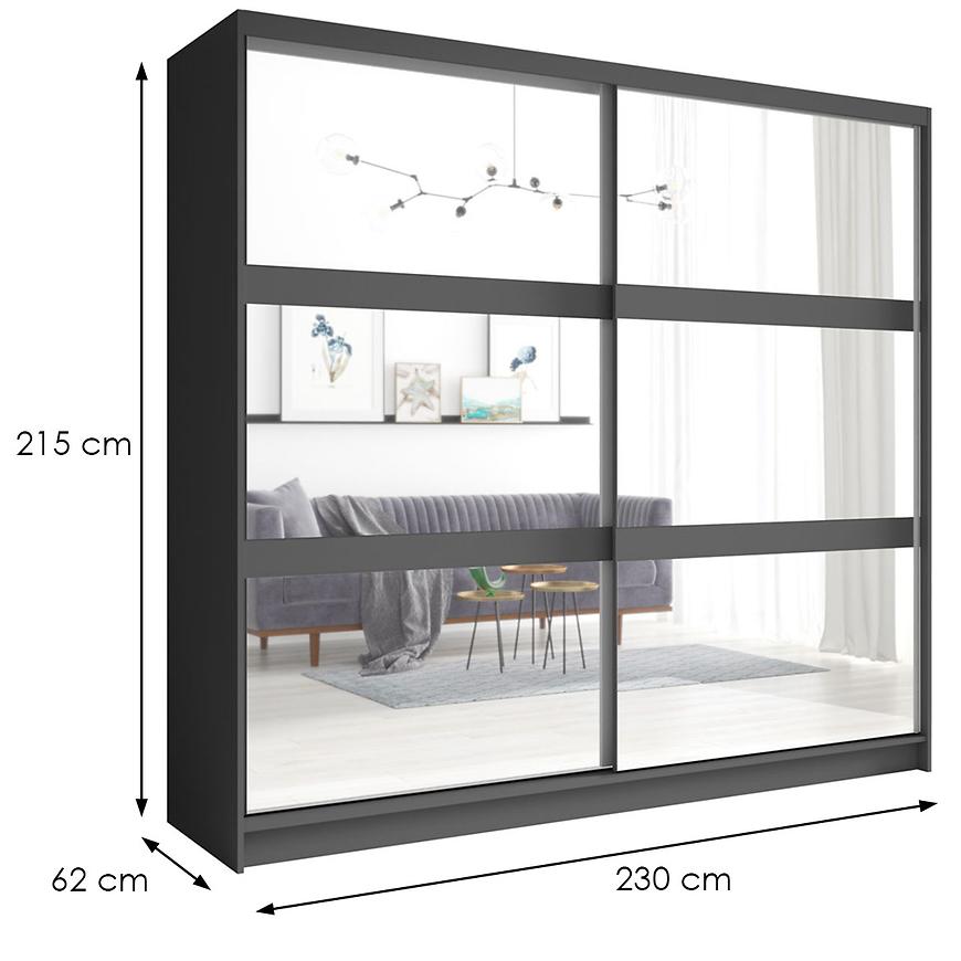 Przesuwne szafy Fino to doskonała propozycja do sypialni, przedpokoju czy pokoju młodzieżowego, ale także do każdego wnętrza. Szafy przesuwne odnajdą się we wnętrzach, w których liczy się każdy centymetr, a na drzwi uchylne nie ma już miejsca. Materiał wykonania to płyta wiórowa laminowana. Neutralizm kolorów i minimalizm sprawią, że szafa świetnie wpisze się w aranżację wnętrz w różnym stylu. Pojemny model szafy pozwoli na przechowanie butów, ubrań czy domowych tekstyliów. Funkcjonalny element szafy stanowi lustro.