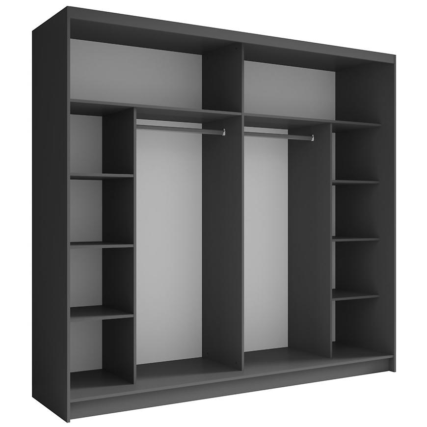 W naszej ofercie znajdziesz szafy na ubrania z wieszaki, szufladami, półkami, z przesuwnymi i uchylnymi oraz lustrem, które będą doskonale pasowały do wnętrz nowoczesnych. Styl szafy ma podrzędne znaczenie, ważne, aby była funkcjonalna. Element wyposażenia Szafy Bergamo stanowi drążek, który ułatwi przechowywanie kurtek czy płaszczy. Tego typu szafa posiada przestrzeń także do przechowywania ubrań - mniejsze i większe półki, w których zmieści się przykładowo pościel czy tekstylia.