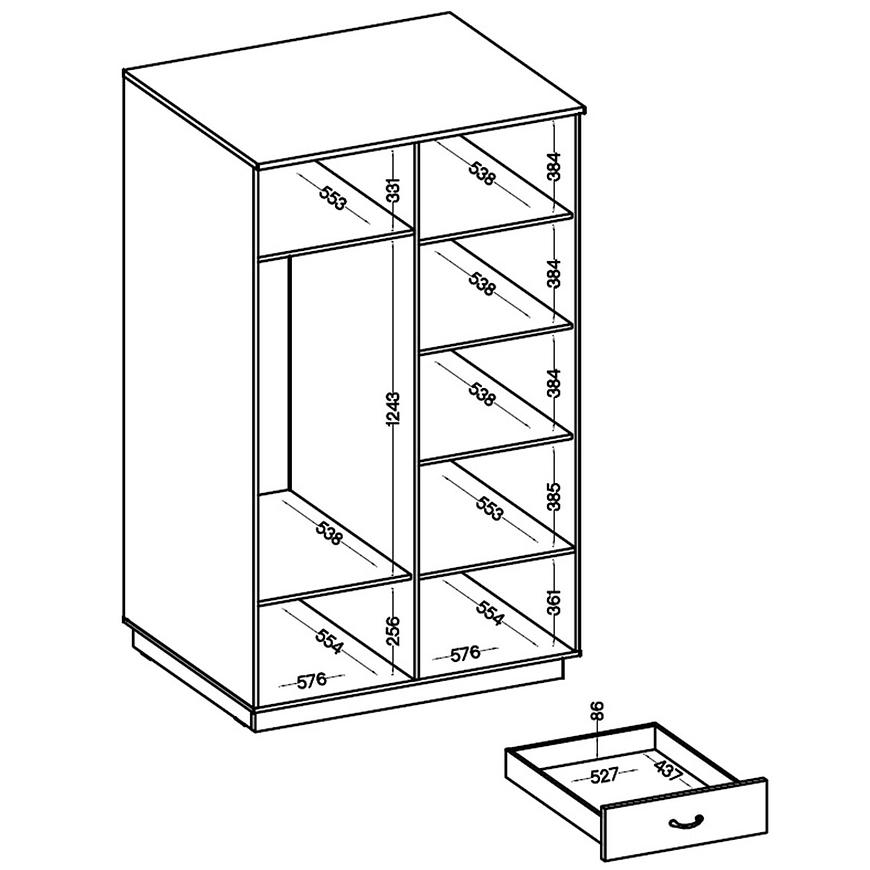 Szafa z drzwiami uchylnymi Flawia to doskonały wybór do garderoby, przedpokoju, salonu czy sypialni. Kolor frontów i korpusu sprawiają, że wpasuje się w większość aranżacji. Jej wnętrze jest pojemne i pomieści zarówno ubrania jak i inne akcesoria. Szafa jest 2-drzwiowa oraz posiada dwie szuflady.