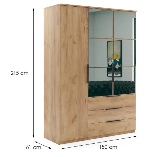 Dzięki uniwersalnemu stylowi szafa świetnie komponuje się zarówno z klasycznymi, jak i nowoczesnymi aranżacjami. Doskonale sprawdzi się w sypialni, garderobie czy przedpokoju, dodając wnętrzu stylu i funkcjonalności.